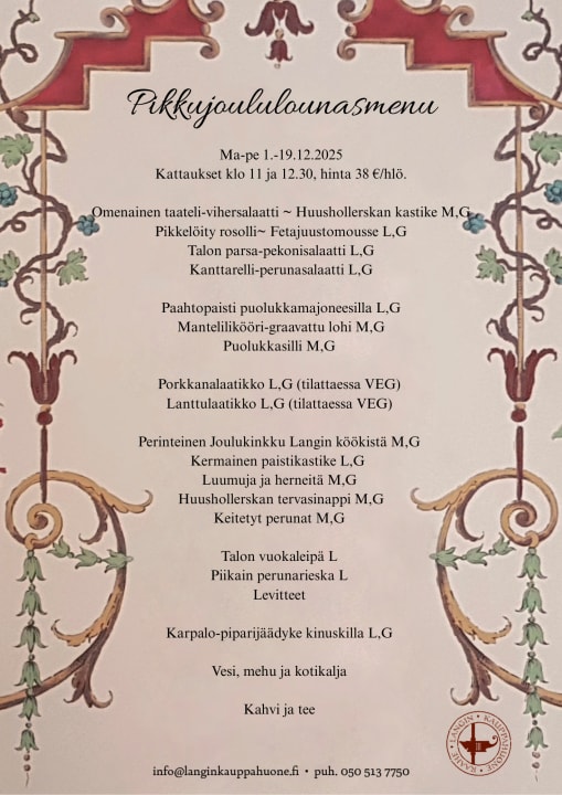 Tervetuloa Langin Kauppahuoneen joululounaalle!