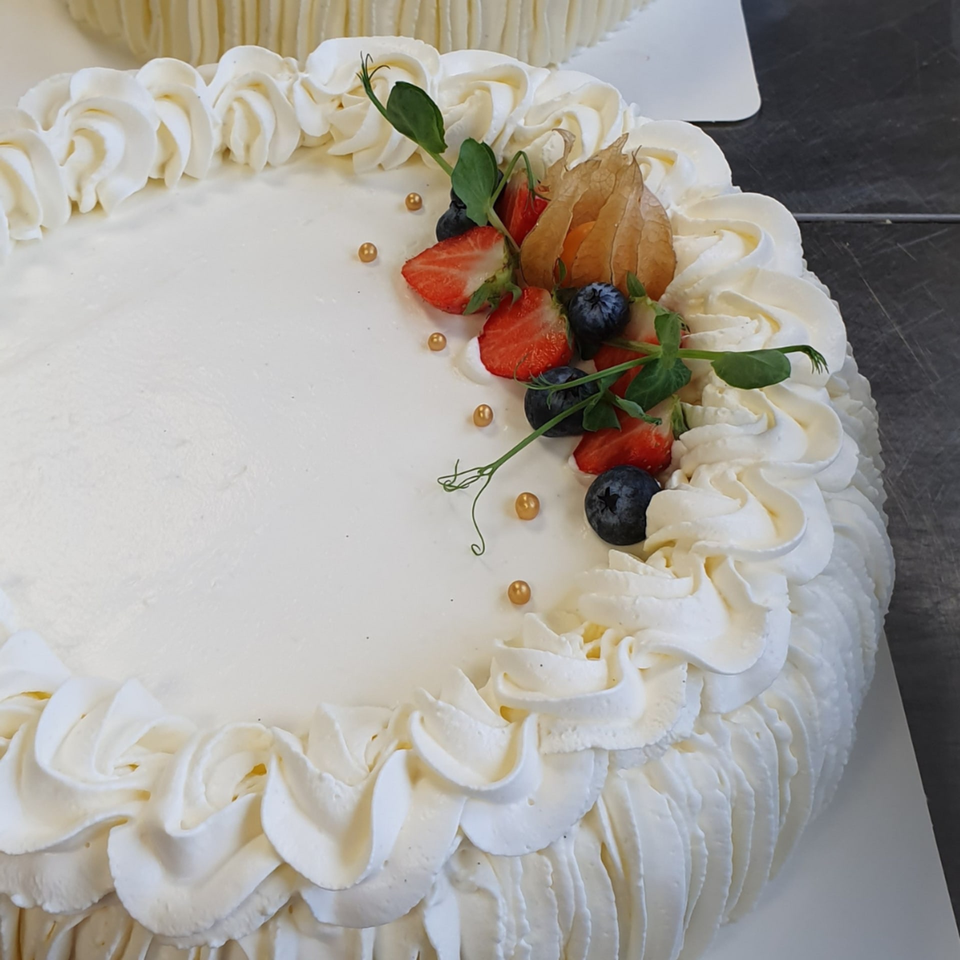 Sileät kermareunat, pinnalla kermaruusukepursotus.
