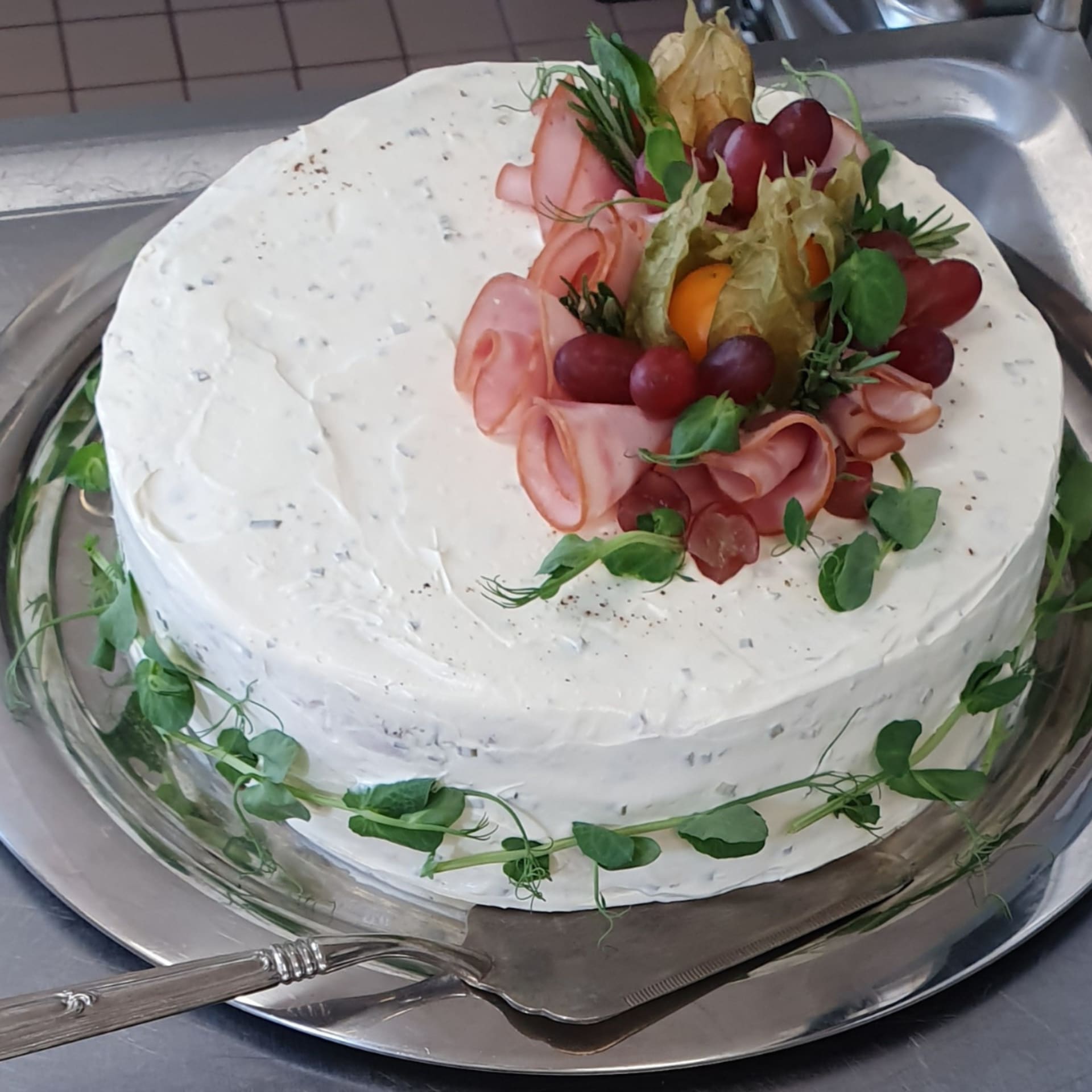 Savuporo- sekä savulohivoileipäkakku, L.