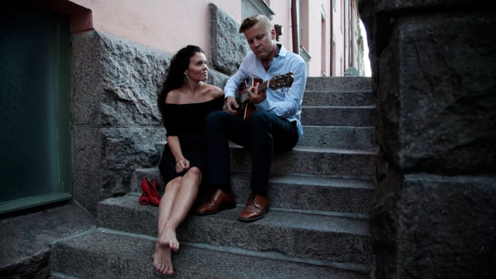 This artist couple performs regularly and continues to release new original songs that have been widely played on Finnish radio in recent years. Tracks like Levoton jalka, Nouse sisko, Rakkauden oppikirja, and Lemmen kutsuja have all been featured on major national stations, including Radio Suomi and Radio Pooki.